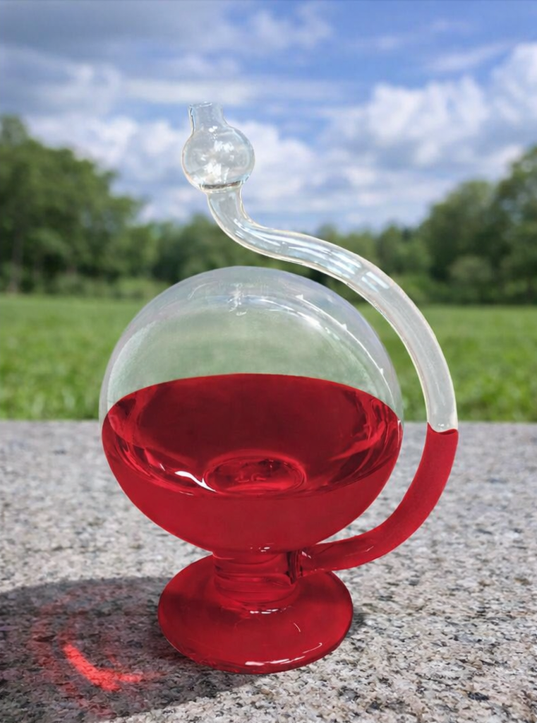 This barometer is based on Goethe’s design. The ball is filled with colored distilled water. Once filled the air trapped inside the ball is no longer subject to variations in atmospheric pressure. The liquid in the indicator tube, however, remains open to the atmosphere and is directly affected by atmospheric pressure. When atmospheric pressure rises the liquid in the indicator tube is pushed down and an improvement in the weather can be anticipated. When air pressure falls the greater pressure inside the weather ball causes the liquid in the indicator tube to rise indicating that a deterioration in weather can be expected. Comes with full instructions.